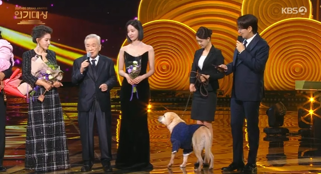 그리고 바로 어제(2025년 1월 11일) 방영된 '2024 KBS 연기대상'에서 이순재 선생님이 대상을 수상하셨습니다! 만 90세의 나이로 역대 최고령 대상 수상 기록을 세우셨네요. 게다가 '개소리'에서 함께 호흡을 맞췄던 개 배우 아리, 연우와 함께 베스트커플상까지 받아 2관왕을 달성하셨습니다.